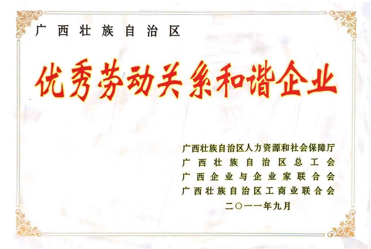 廣西壯族自治區(qū)優(yōu)秀勞動(dòng)關(guān)系和諧企業(yè)